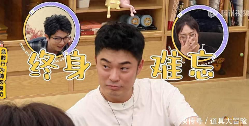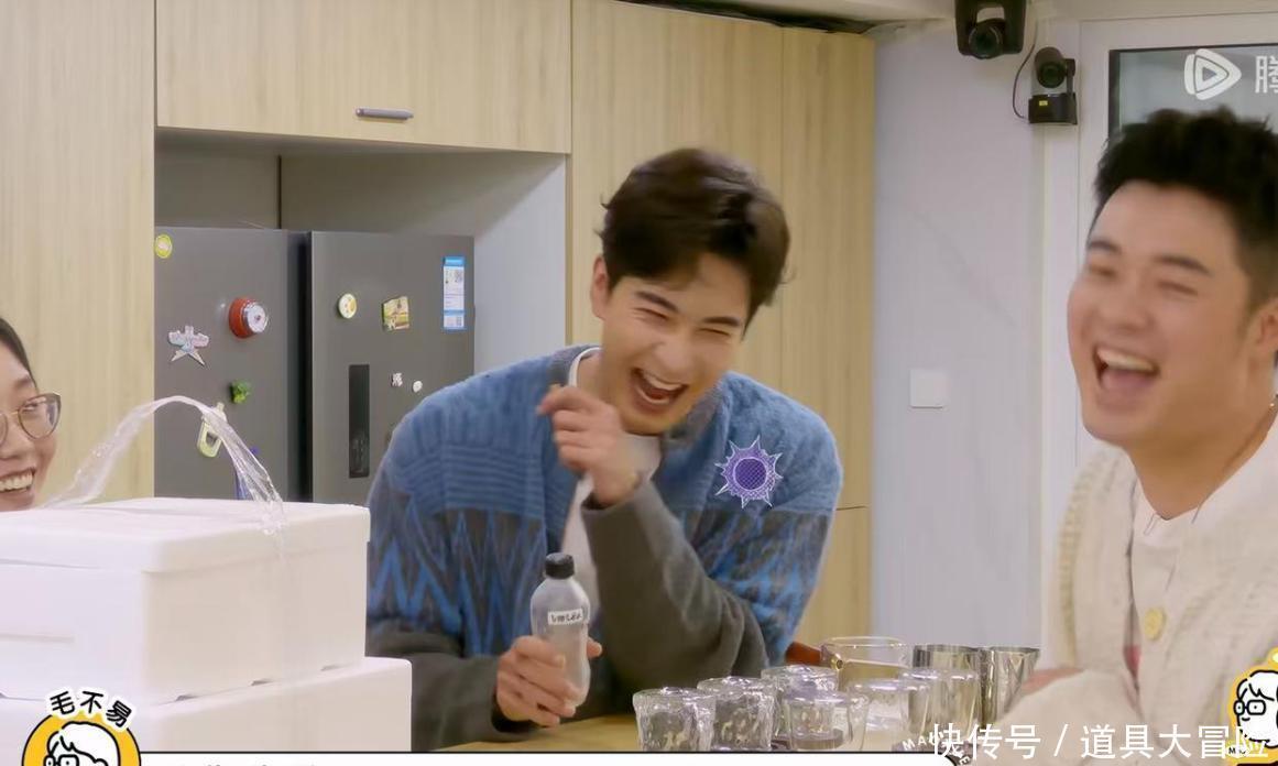 可下一秒,他就“坑”起了主人家:逼毛不易、李雪琴对着吹瓶气泡水,美其名曰“尽地主之谊”,自己却躲旁边坏笑。陈星旭还配合得像“迷弟”,满屋子找饮料继续灌。看到他们三人撑得直打嗝,陈赫在旁边是一脸地坏笑。他是人们眼中的“魔丸”。